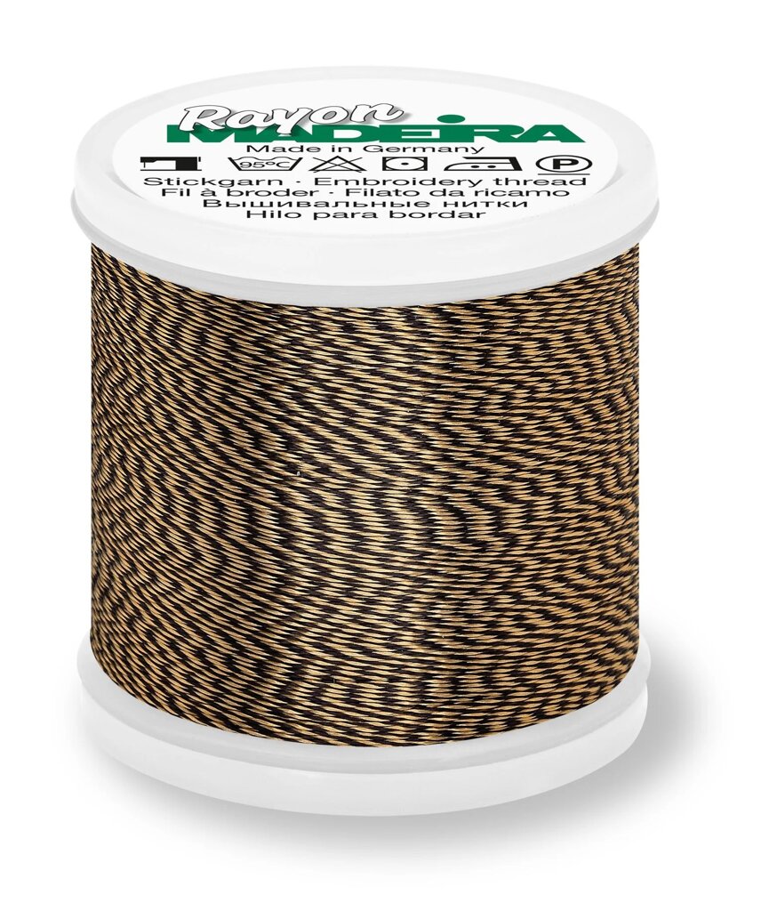 Vyšívacia niť Madeira Rayon č. 40 (200 m) je vysoko kvalitná vyšívacia niť z viskózového vlákna. Efektívne prevedenie Mélange pre atraktívny tvídový vzhľad. V návine 200 m. Používa sa ako horná niť na vyšívanie.