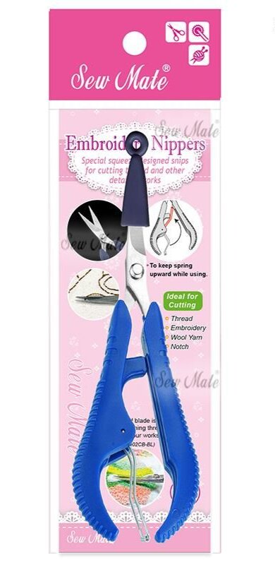 Kvalitné vyšívacie nožnice na spôsob nožníc známych ako cvakačky. Nožnice majú zahnutú špičku na strihanie na horšie prístupných miestach. Nožnice sú vyrobené z kvalitnej nerezovej ocele a sú úplne ideálne pre ručné aj strojové vyšívanie. Nožnice majú pohodlnú gumovú rukoväť a vďaka páčke, ktorá vracia nožnice späť do základnej polohy je práca s nožnicami jednoduchá a pohodlná. Nožnice majú praktický kryt čepele s očkom na zavesenie. Nožnice sú vhodné pre pravákov aj ľavákov.