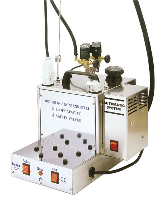 obchod@raj-sitia.skVyvíjač pary Gemme PG036 5 l je profesionálny vyvíjač pary s objemom 5 l. Vyvíjač pary má kompaktné rozmery a celonerezovú konštrukciu, vďaka ktorej môže vyvíjač pracovať aj s vodou z kohútika bez zanesenia vodným kameňom. K vyvíjaču pary PG 036 je možné pripojiť až dve žehličky FS454-32. Vhodné do menších aj väčších prevádzok. Aj napriek objemu 5 l má vyvíjač pary malé rozmery a úchyt pre ľahké premiestňovanie. Napriek tomu pre udržanie dlhej životnosti a bezproblémové používanie odporúčame do vyvíjača pary používať destilovanú vodu.