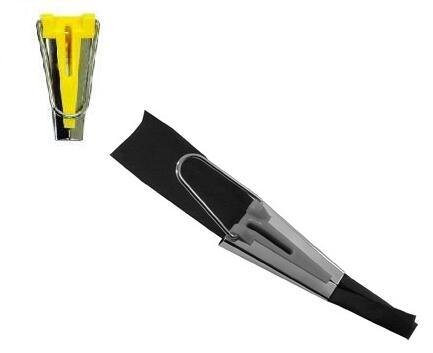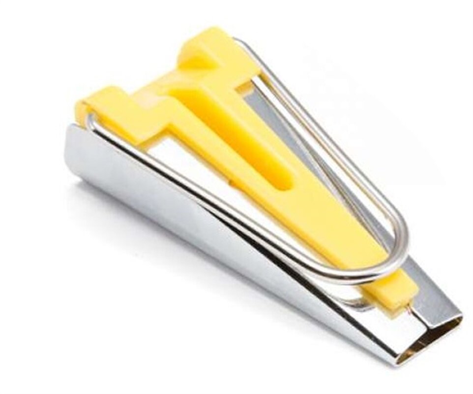 obchod@raj-sitia.skZakladač šikmých prúžkov 12 mm je praktické príslušenstvo, ktoré sa používa na vytváranie šikmých prúžkov širokých 12 mm. Pri použití zakladača šikmých prúžkov postupujeme tak, že si najskôr pripravíme pruh látky, 2x širší ako je udávaný rozmer zakladača (pri použití tohto zakladača bude potrebný prúžok látky široký 2,4 cm). Prúžok látky vložíme do širšej strany zakladača rubovou stranou nahor. Látku zakladačom pomaly naťahujeme, zatiaľ čo výsledný prúžok zožehľujeme žehličkou, aby držal tvar.