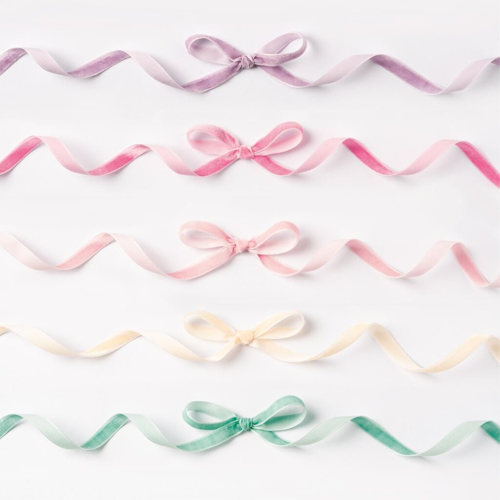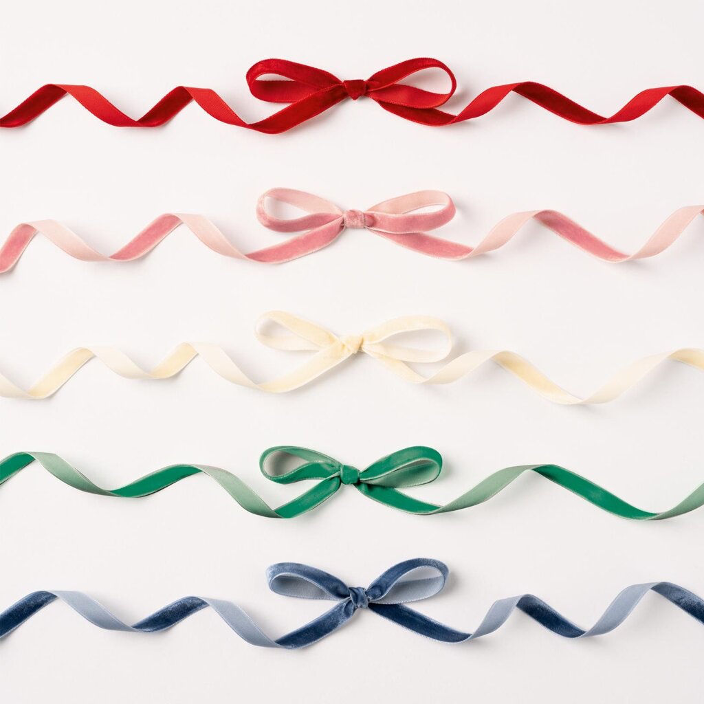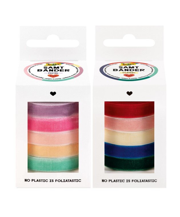 Krásne a príjemné zamatové stužky v piatich farbách, každá má návin 2 ma šírku 10 mm. Stuhy na dekoračné účely.