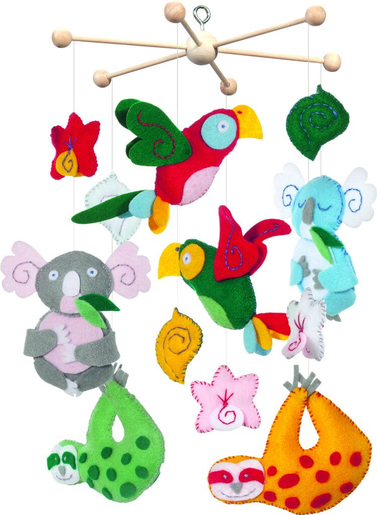Závesný kolotoč - zvierací svet je sada vďaka ktorej si ušijete postavičky zvieratiek na drevený závesný kolotoč. Veľmi ľahké na zostavenie.