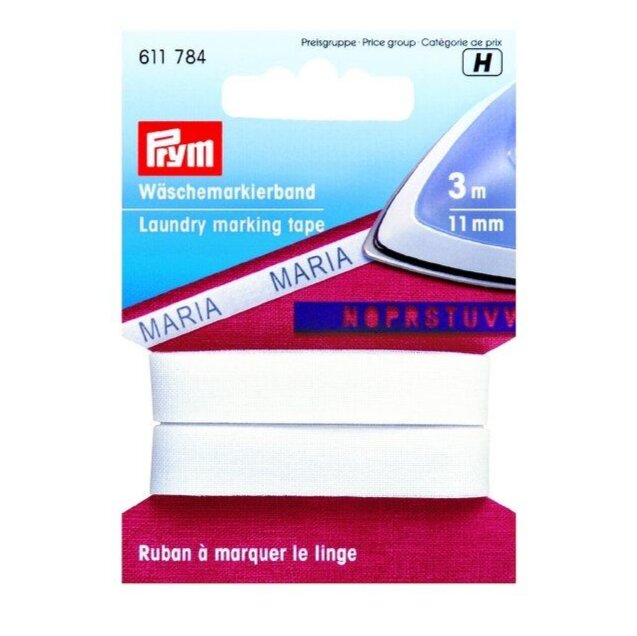 Zažehľovacia páska na označovanie bielizne - PRYM je páska, ktorú jednoducho zažehlíte na látku a pomocou pernamentného fixu bielizeň označíte.