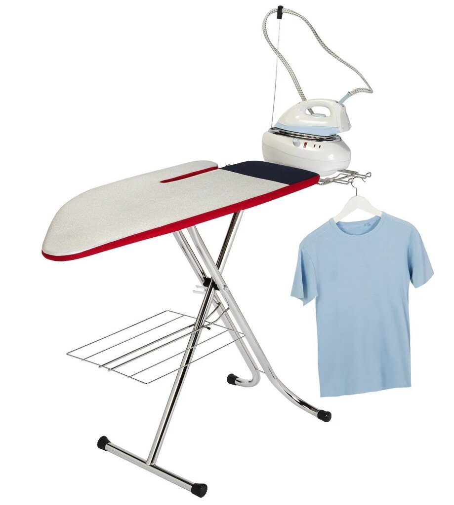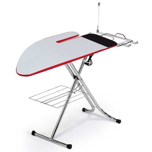 Žehliaca doska by nemala chýbať v žiadnej domácnosti. Žehliaca doska Clarie Combi je dokonale premyslená žehliaca doska, ktorá urobí žehlenie zábavou. Žehliaca doska Clarie Combi má premyslený tvar. Má integrovaný rukávnik, čo je veľká výhoda, nemusíte dokupovať rukávnik samostatne. Na kraji dosky je ohňovzdorný odkladací priestor na rýchle odloženie žehličky. Nechýba ani výsuvný stojan na parné stanice aj žehličky. Žehliaca doska má aj flexibilný a skladací vodič káblov, čo zaistí komfortné žehlenie. Ako bonus je doska vybavená drôteným odkladacím priestorom. Nechýba ani mriežka na zavesenie blúzok či košieľ na ramienku. Jedná sa o kvalitnú žehliacu dosku talianskej výroby, premyslenú do posledného detailu. Uspokojí aj náročných užívateľov.