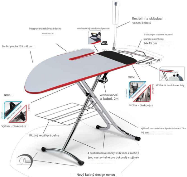- Žehliaca plocha o rozmere 125 x 48 cm