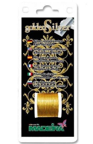 Zlatá niť GoldenSilver (100m) - Madeira je efektívna šijacia a vyšívacia niť, ktorá dodá Vašim projektom originalitu.