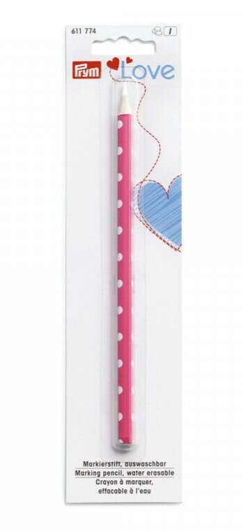 Praktická značkovacia ceruzka od značky Prym Love s ktorou bude radosť pracovať. Biela značkovacia ceruzka ide skvele vidieť na tmavých aj svetlých látkach. Ceruzku môžete ostrúhať na akomkoľvek bežnom strúhadle. Značkovacia ceruzka je vyprateľná.