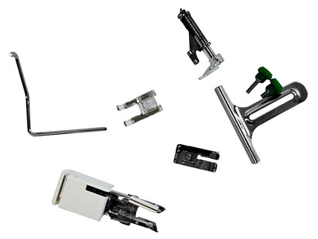 Zostava pätiek pre quilting a patchwork zahŕňa sadu dvoch skrutiek, nastaviteľné vodiče a štyri šijacie pätky pre šijacie stroje Janome s rotačným chapačom.